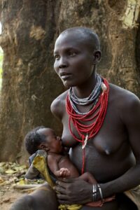 Kwegu woman feeds her newborn