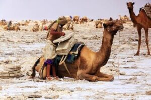 After breakfast in the morning, we pack up everything and drive to Hamedela, visit the amazing afar communities who managed to survive this inhospitable and uninhabitable environment in an amazing way. Then we drive north of our campsite for Lake Asale to have an excellent time discovering the camel caravan and salt mining areas, then back to our campsite and overnight in Hamedela campsite. (90Kms)